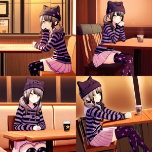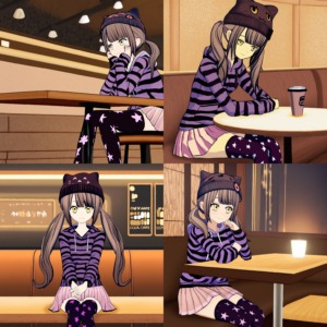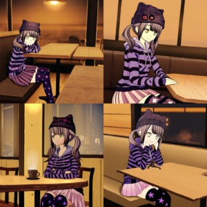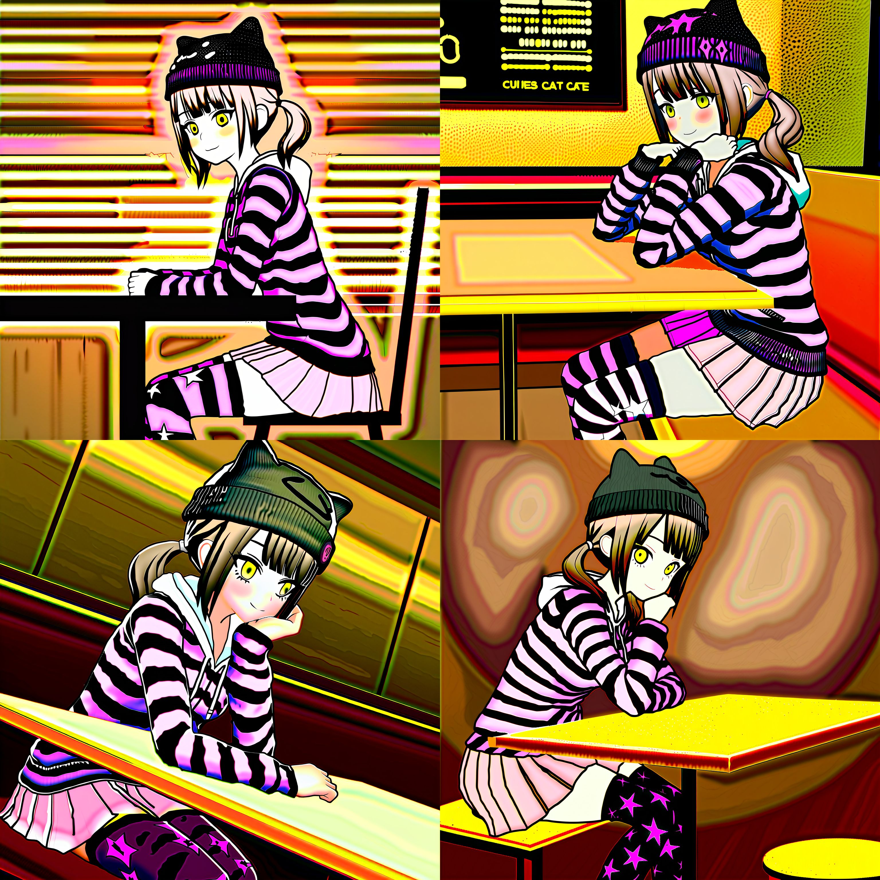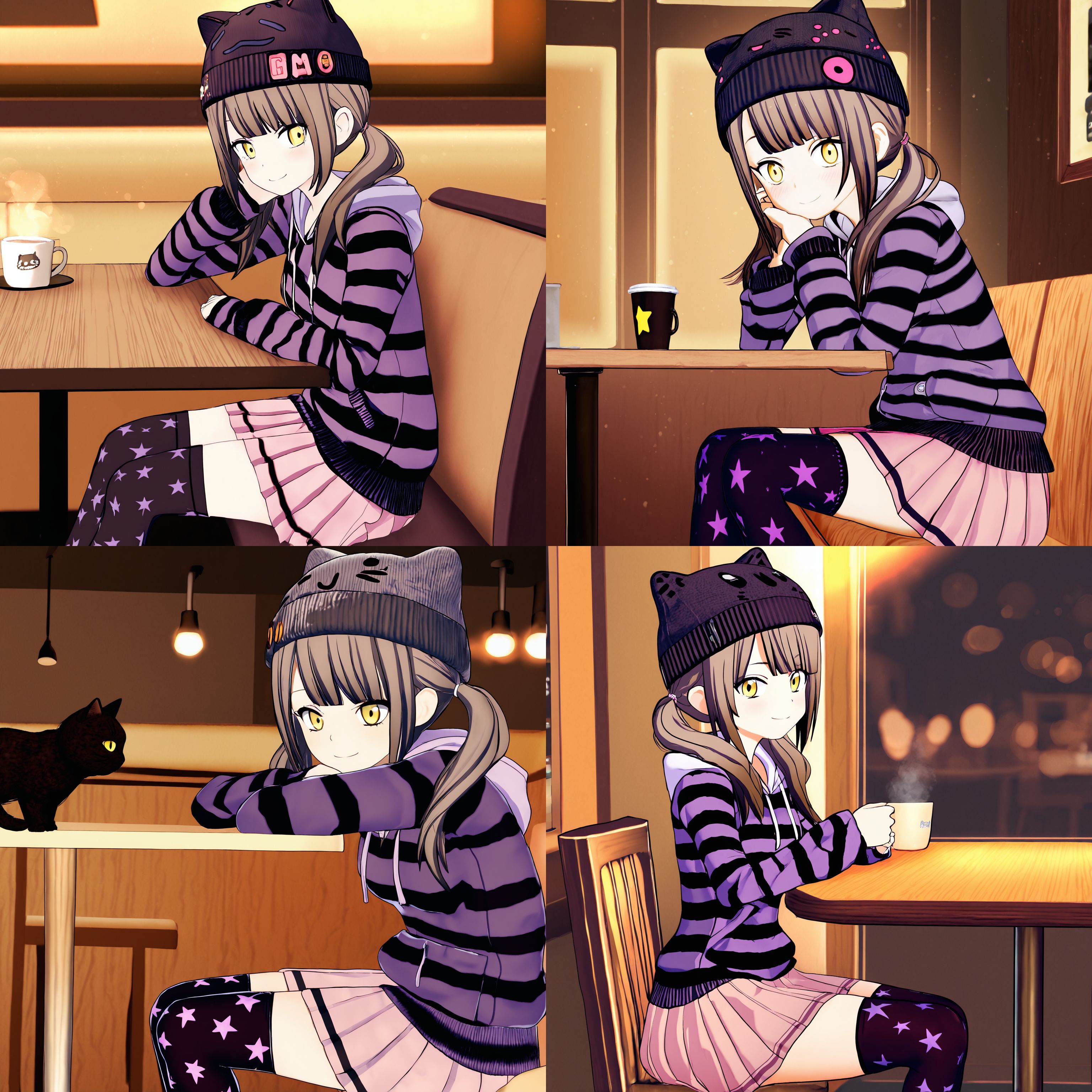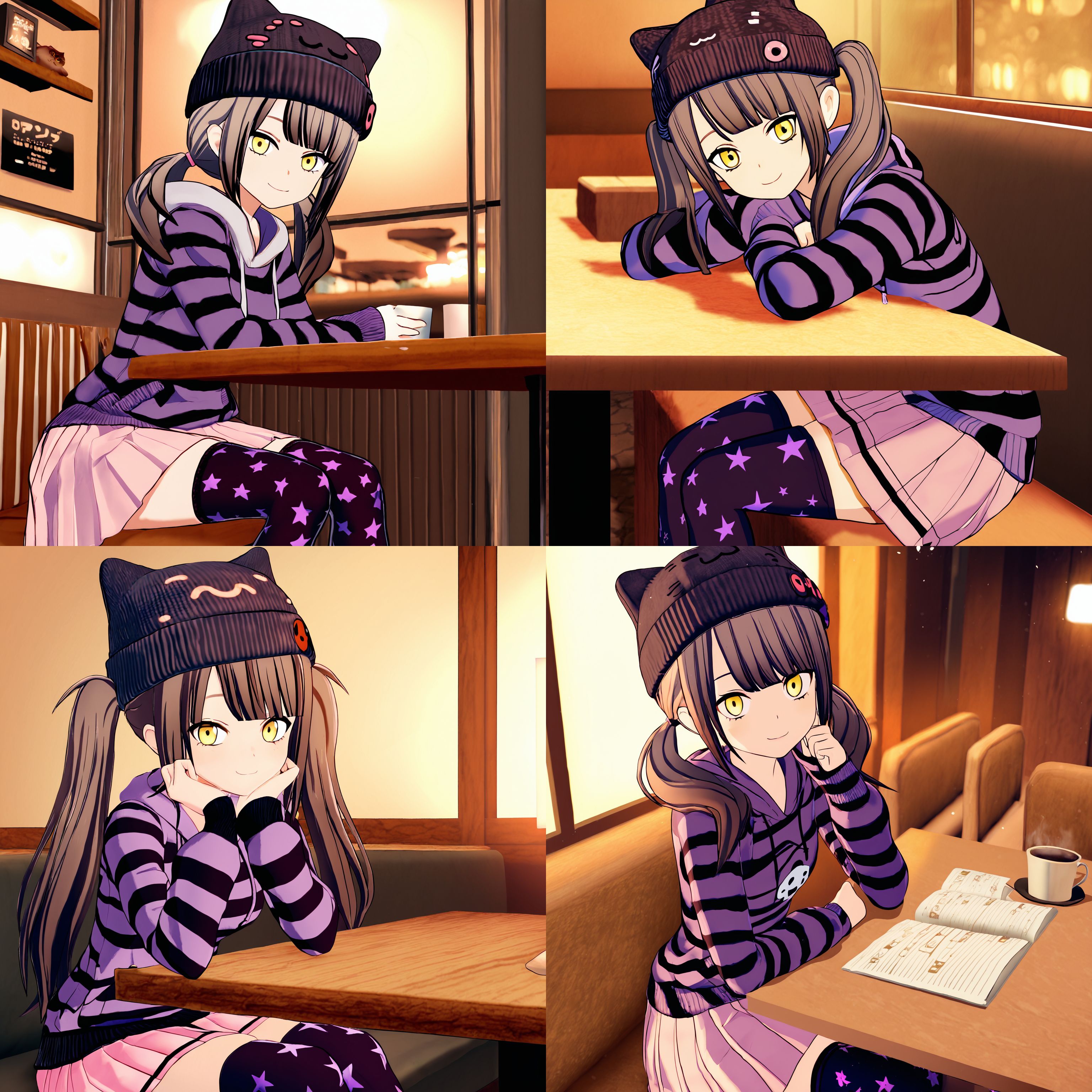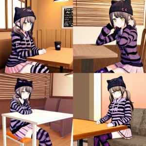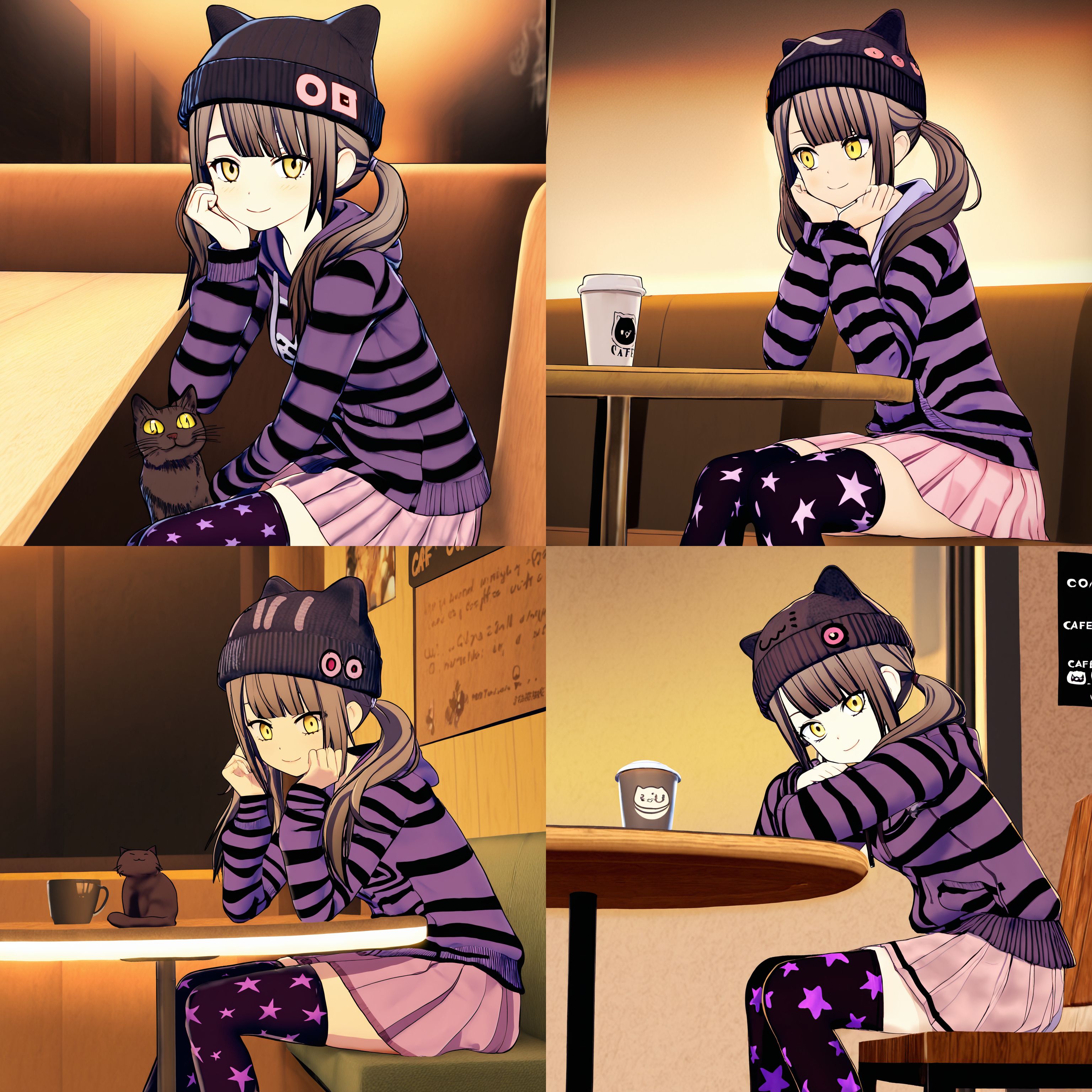 前回のカフェを、プロンプトそのまま、LoRAだけ変更して複数枚出したモノ。