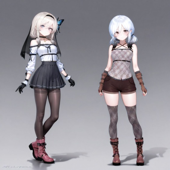 途中途中で拾ったTipsがかなり役に立ったので、これを元に再挑戦…前に、再学習して服装などの特徴を全てLoRAに注ぎ込んでなるべくプロンプトを少なくしてみよう。