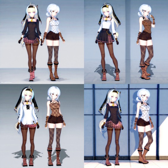 (背景、品質、小物などは重複して全部に書く。服の特徴やポーズなど、キャラに関することだけ別々に書く)