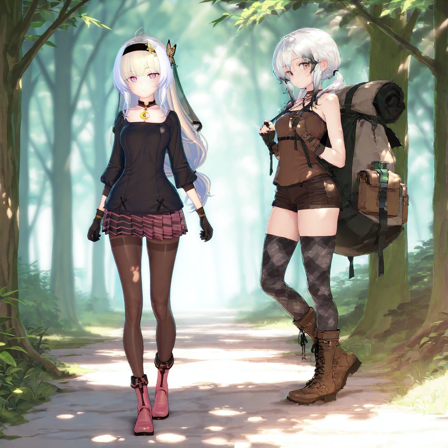 全体の情景に「森林・木漏れ日」だけ指定して2人を指定して出力。