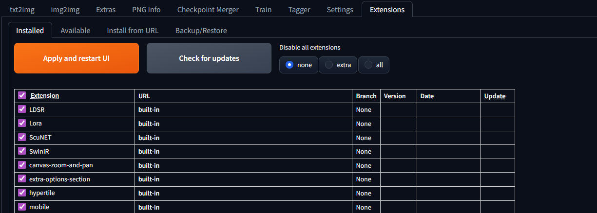 Composable Loraは標準版(ExtensionのAvailableタブでおとしてくるやつ)ではなく、Git Hubのフォーク版を利用。