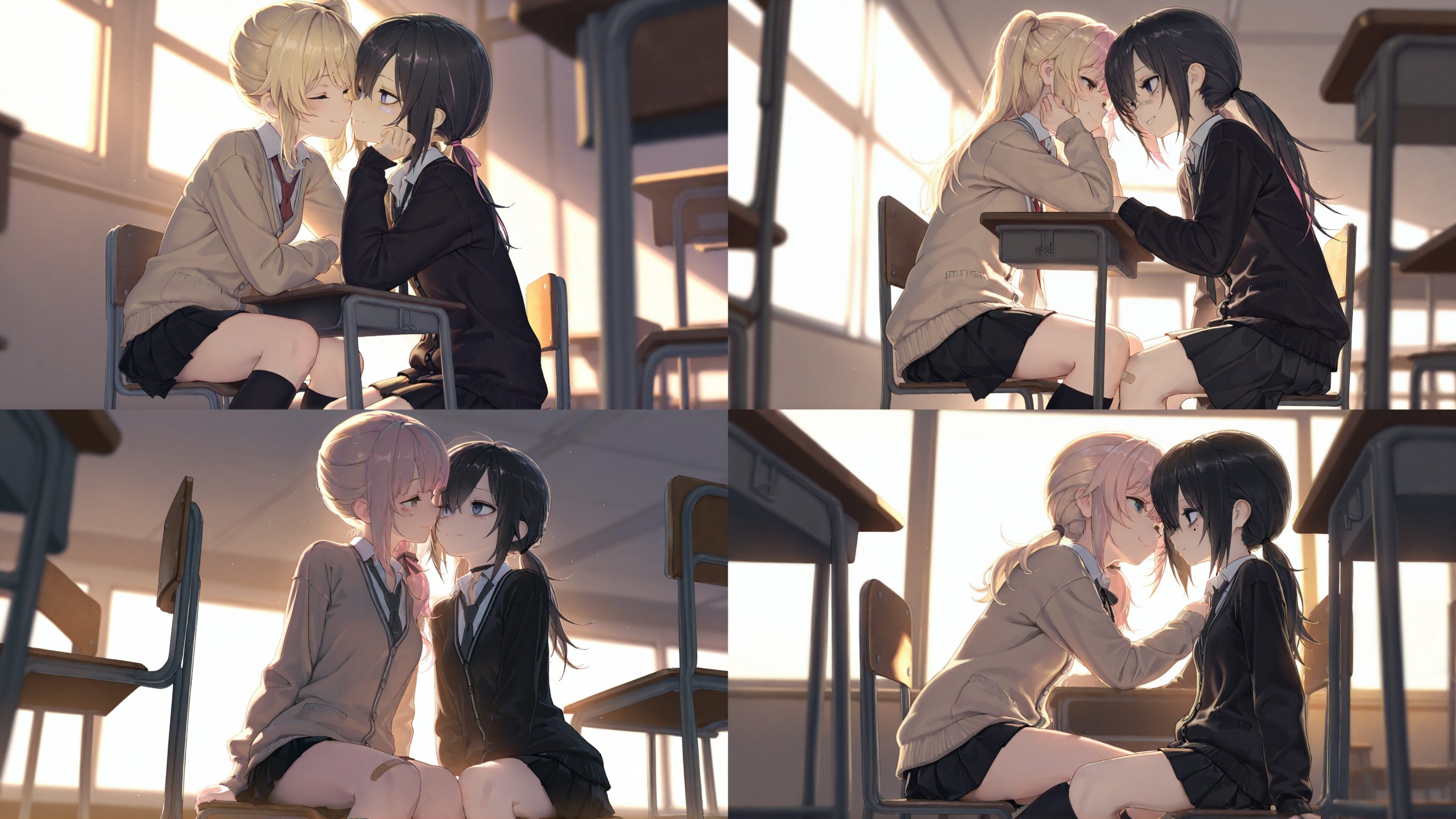 (masterpiece:1.4), <lora:lora:0.2>, 2girls, 風景とかライティングの情報, wide shot BREAK