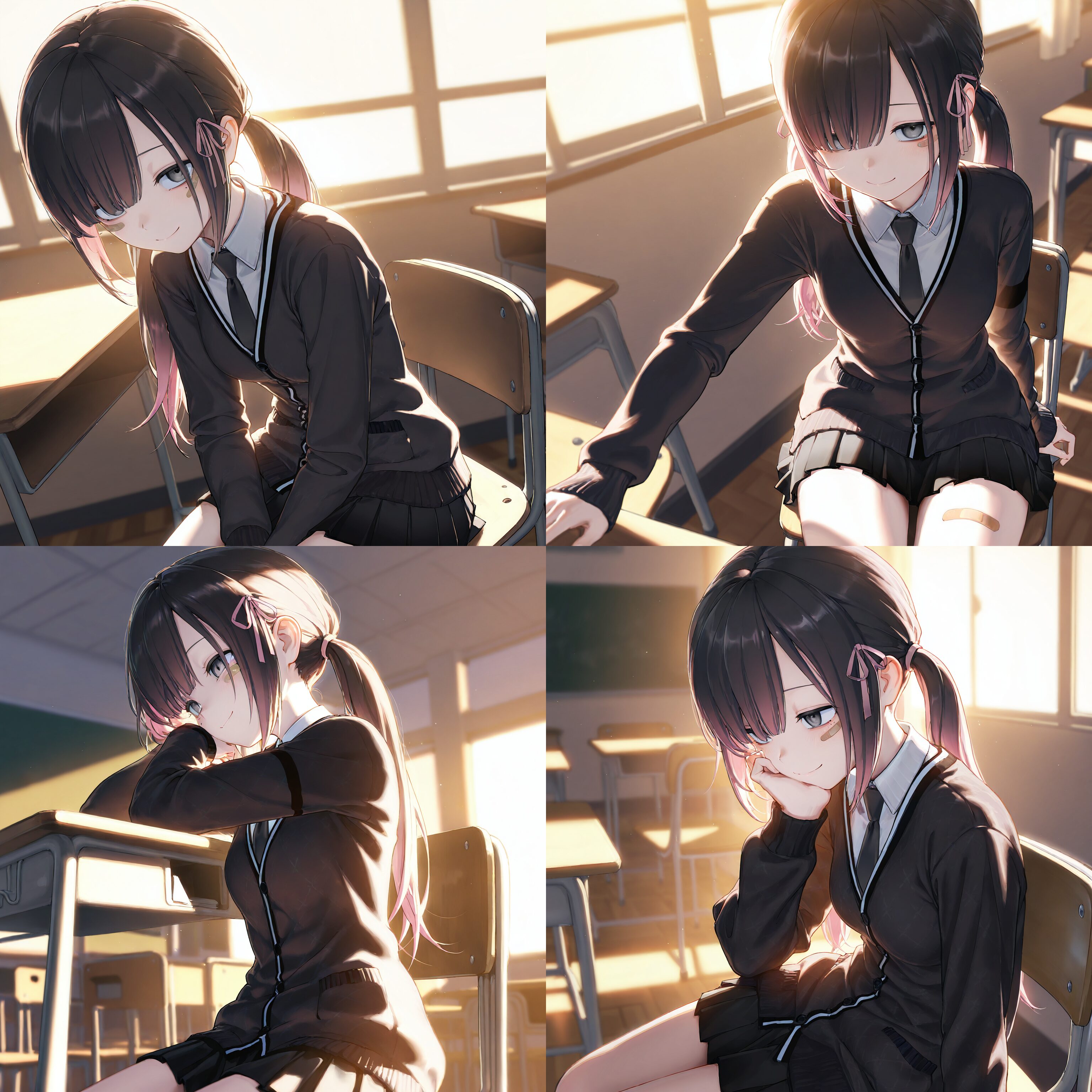 服装も色々違うけど、LoRAのウェイトを上げると極端に崩れるので上げることもできず。CFGスケール(プロンプトの命令忠実度)で対応しても無理。