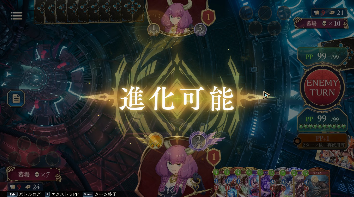 HP1、PP99でターン終了を先行側が「進化可能」と出るまでやるだけのゲーム。